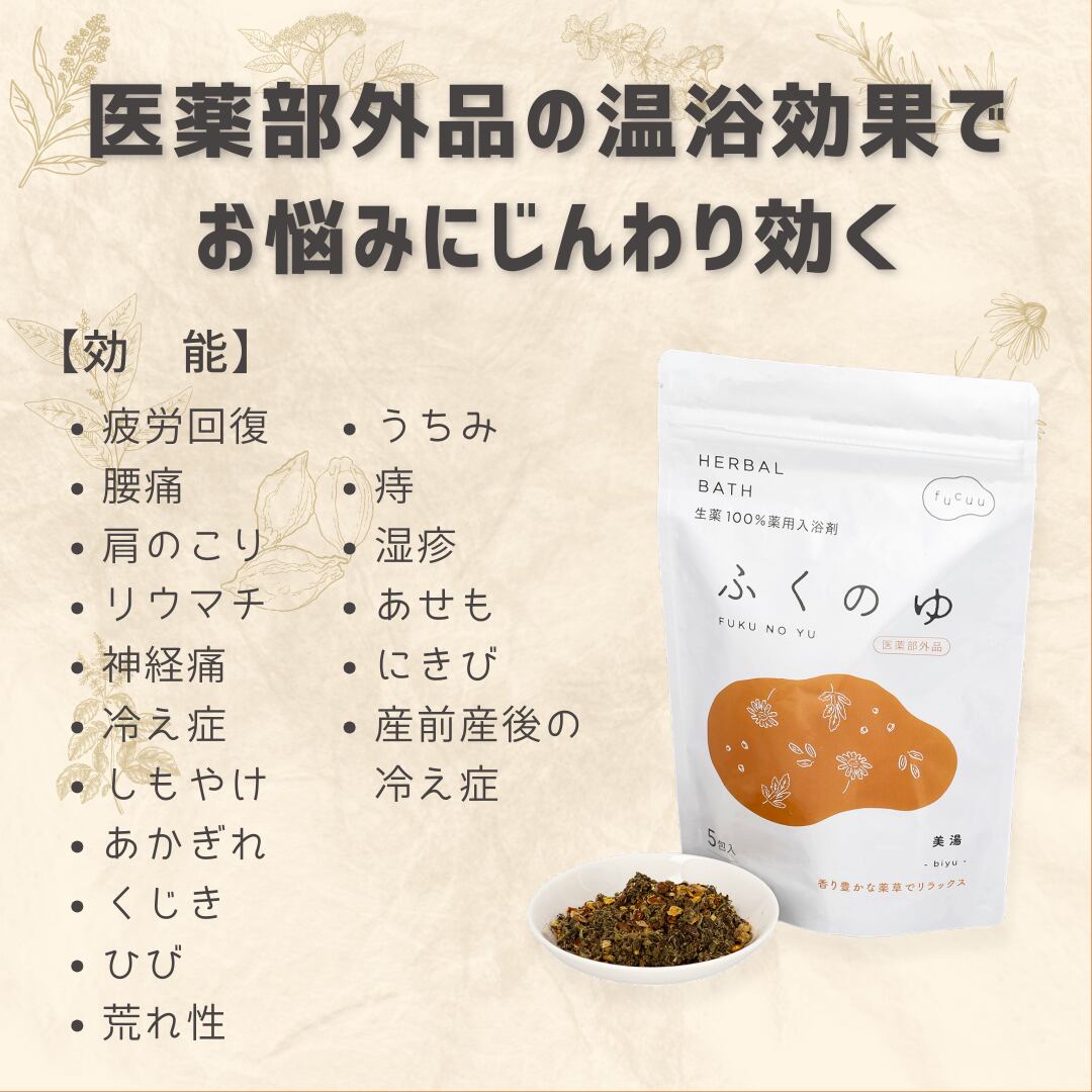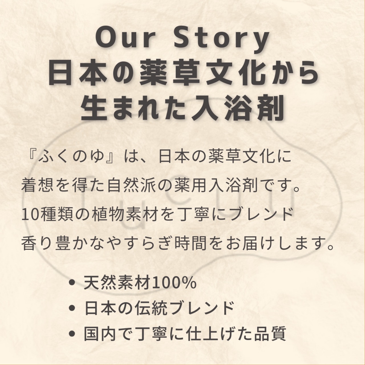 ふくのゆは、10種類の和漢植物を100%使用した自然派の薬用入浴剤。